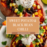 Store any leftover chilli and sweet potatoes together in an airtight container in the refrigerator for up to 2 days. Reheat gently in the microwave until piping hot, adding a splash of water if the chilli has thickened. For best texture, reheat the chilli separately and warm sweet potatoes on the side.