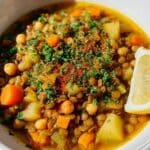 Keywords: Middle Eastern stew, lentil stew, chickpea stew, vegetarian stew, healthy stew, lentils and chickpeas, comfort food, plant-based protein