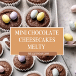 These Mini Chocolate Cheesecakes combine a crunchy milk chocolate digestive biscuit base with a rich and creamy ricotta and dark chocolate filling. Individually portioned in muffin cases and topped with colorful mini chocolate eggs, these delightful desserts are perfect for sharing at parties or enjoying as a sweet treat any time.