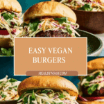 Keywords: plant-based burgers, meat-free burgers, vegan burgers, cabbage slaw, vegan mayo, quick dinner, grilled burgers, healthy meal