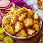 - Serve: Serve the mustardy roast potatoes alongside slices of salt beef, sweet & sour gherkins, and Dijon mustard for dipping. Optionally, add buttered rye bread to complement the dish.