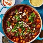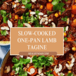 A flavorful and aromatic one-pan lamb tagine with tender lamb neck, chickpeas, and an array of North African spices. This hearty slow-cooked dish combines ras el hanout, preserved lemon, harissa paste, and cinnamon to create a rich, comforting stew served with couscous and spiced yogurt, perfect for a cozy meal.
