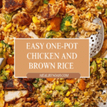Keywords: one pot chicken recipe, chicken and brown rice, easy chicken dinner, stovetop chicken and rice, healthy one pot meal