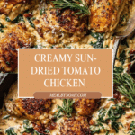 Keywords: One skillet chicken, sun-dried tomato chicken, creamy orzo, easy chicken dinner, skillet recipe, one pan meal, creamy pasta chicken
