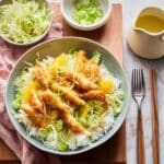 This delightful Orange Chicken recipe features tender chicken fillets coated in a crispy flour mixture, fried to golden perfection, and smothered in a tangy, sweet orange sauce. Served with shredded iceberg lettuce, fresh orange slices, and aromatic spring onions over fluffy basmati rice, it’s a refreshing take on a classic favorite that balances texture and vibrant citrus flavors beautifully.