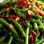 Ottolenghi’s Green Bean Salad is a vibrant and flavorful dish featuring tender-crisp green beans and charred red capsicum, tossed with a warm, aromatic dressing of garlic, capers, cumin, and coriander seeds. Fresh herbs like chervil and tarragon add brightness while lemon zest brings a citrusy lift, making this salad a perfect, refreshing side or light meal that can be enjoyed immediately or the next day at room temperature.