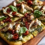 This Pesto Chicken Flatbread is a quick and delicious dinner option that combines tender chicken, fresh basil pesto, and gooey melted cheese on a crispy flatbread base. Perfect for busy weeknights or casual gatherings, it’s easy to prepare and sure to satisfy.