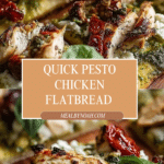 This Pesto Chicken Flatbread recipe is a quick and easy dinner option featuring tender pesto-coated chicken, melty mozzarella, juicy cherry tomatoes, and crispy flatbread. Perfect for a delicious homemade meal that comes together in under 30 minutes, combining fresh basil pesto with savory chicken and cheeses for a vibrant and satisfying dish.