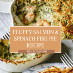 Keywords: Fish pie, salmon pie, spinach fish pie, puffed mashed potato, baked fish pie, healthy fish dish