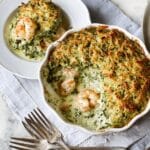 This Puffed Salmon & Spinach Fish Pie is a comforting and flavorful dish featuring a creamy fish sauce topped with a fluffy spinach-infused mashed potato crust. The combination of white fish and salmon provides a rich seafood flavor, while the addition of mature cheddar and nutmeg enhances the warmth and depth. The egg whites folded into the mash create a light, airy topping that bakes to a beautiful golden puff, making this pie both satisfying and visually appealing.