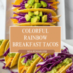Keywords: breakfast tacos, rainbow tacos, scrambled eggs, vegetarian breakfast, healthy tacos, Mexican-American breakfast