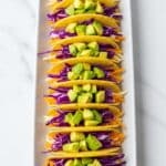 - Prepare the Vegetables: Dice the red bell pepper and thinly slice the red cabbage. Arrange each topping in a rainbow order to make assembly easy and visually appealing.