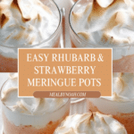 These Rhubarb & Strawberry Meringue Pots combine tangy stewed rhubarb with sweet strawberry conserve, topped with a light, golden meringue. Perfect as an elegant dessert that feels special yet is simple to prepare.
