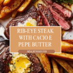 Keywords: rib-eye steak, cacio e pepe butter, steak recipe, peppercorn butter, cheesy butter, steak with chips, easy steak dinner