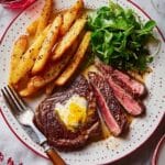 Keywords: rib-eye steak, cacio e pepe butter, steak recipe, peppercorn butter, cheesy butter, steak with chips, easy steak dinner