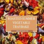 Keywords: roasted vegetables, summer traybake, aubergine recipe, healthy side dish, Mediterranean vegetables, vegan dinner