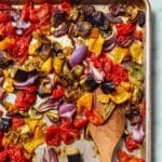 Keywords: roasted vegetables, summer traybake, aubergine recipe, healthy side dish, Mediterranean vegetables, vegan dinner