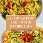 Keywords: saffron risotto, zucchini risotto, sun-dried tomatoes, Italian risotto recipe, creamy risotto, vegetarian risotto