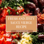 Sauce Vierge is a fresh, vibrant French sauce featuring diced tomatoes, olives, anchovies, and aromatic herbs in a lemony extra virgin olive oil base. This versatile salsa-like sauce is perfect served at room temperature over seafood, grilled vegetables, chicken, pork, pasta, or as a flavorful dip.