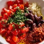Sauce Vierge is a fresh, vibrant French sauce featuring diced tomatoes, olives, anchovies, and aromatic herbs in a lemony extra virgin olive oil base. This versatile salsa-like sauce is perfect served at room temperature over seafood, grilled vegetables, chicken, pork, pasta, or as a flavorful dip.