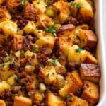 Keywords: sausage stuffing, holiday stuffing, pork sausage recipe, bread stuffing, savory side dish, Thanksgiving recipe