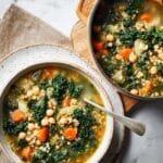- Incorporate Kale: Once the grains and legumes are tender, season the soup again if necessary. Stir in the chopped kale and continue to simmer for another 10-15 minutes until the kale is tender and fully cooked through.