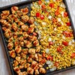 Sheet Pan BBQ Chicken Bites with Buttered Corn is a quick and flavorful weeknight meal that combines juicy chicken pieces glazed in a sweet and tangy BBQ sauce with buttery, tender corn and vegetables. Everything cooks together on one pan, making cleanup a breeze.