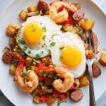 Keywords: Shrimp, Chorizo, Breakfast, Skillet, Eggs, Mexican, Spicy, Easy Brunch