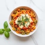 - Add Burrata and Basil: Arrange 1/2 cup burrata cheese atop the pasta mixture, followed by 12 fresh basil leaves scattered evenly over the top.