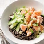 Keywords: smoked trout, soba noodles, cucumber, sesame noodles, tahini dressing, healthy noodle salad, quick lunch recipe