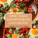 Keywords: smoky beans, baked eggs, breakfast recipe, vegetarian brunch, easy stovetop meal, black beans, pinto beans, smoked paprika
