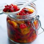 These smoky paprika peppers are a vibrant and flavorful preserved pepper recipe featuring sweet smoked paprika infused olive oil and a blend of aromatic spices. The peppers are grilled to charred perfection, peeled, simmered briefly in a tangy vinegar bath, and then packed in fragrant spiced oil, making for a delicious antipasto or condiment that keeps well refrigerated for up to a week.