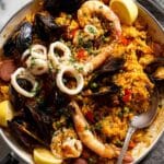 Keywords: Spanish paella, seafood paella, chorizo paella, chicken paella, traditional paella, saffron rice, Mediterranean recipe