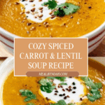 Keywords: carrot soup, lentil soup, spiced soup, cumin soup, vegetarian soup, easy soup recipe, healthy soup, Middle Eastern soup