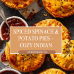 These spiced spinach and potato pasty pies are a flavorful and comforting treat, perfect for a cozy meal or snack. Combining fragrant Indian spices with tender potatoes and spinach, wrapped in crisp shortcrust pastry, they offer a delicious twist on a classic pasty.