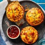 - Bake the Pies: Preheat the oven to 220°C (200°C fan)/gas mark 7. Bake the pies on the prepared tray for 30-35 minutes until the pastry is deep golden brown and crisp.