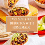 These spicy rice burritos combine fragrant brown basmati rice cooked with mild chili and warm spices, black beans, fresh avocado lime smash, and crunchy lettuce, all wrapped in thin homemade wholemeal spelt flour tortillas. Perfect for a nutritious, flavorful meal that’s easy to assemble and can be made ahead for lunches.