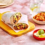 - Assemble Burritos: Lay a whole iceberg lettuce leaf over a wrap, spoon over a layer of the cooled spicy rice and bean filling, scatter with sweetcorn, then add a generous layer of avocado mash. Dollop with bio yogurt, sprinkle chopped coriander and top with halved Kalamata olives.