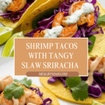 Delicious and vibrant Spicy Shrimp Tacos featuring perfectly seasoned sautéed shrimp, tangy and sweet cabbage slaw, and a creamy Sriracha ranch sauce, all wrapped in warm corn tortillas. A quick and flavorful meal that’s perfect for weeknights or casual gatherings.