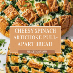 Keywords: Spinach artichoke dip, pull-apart bread, cheesy bread, appetizer, party food, spinach dip