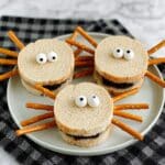 - Add the spider legs: Insert three pretzel sticks on each side of the sandwich to create the legs, making six legs per spider sandwich.