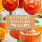 Sugar Sunset Margaritas are a refreshing cocktail combining freshly squeezed orange and lime juices with a homemade simple syrup, silver tequila, and refreshing sodas. Served over crushed ice with a sugar-rimmed glass, this vibrant drink perfectly balances citrus tang and sweetness for a delightful sunset-inspired margarita experience.