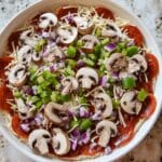 - Add Toppings: Arrange the pepperoni slices on top of the cheese. Then add the chopped bell peppers, sliced portabella mushrooms, diced red onion, and sliced cherry tomatoes evenly over the pepperoni.