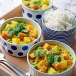 - Serve: Season the curry to taste with salt and pepper if needed. Spoon the curry into bowls and scatter the roughly chopped coriander over the top before serving.