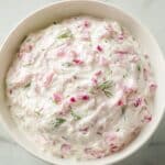 - Use finely chopped fresh dill for a brighter herbal note or omit it if you prefer a milder dip.