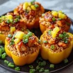 This Teriyaki Pineapple Chicken & Rice Stuffed Peppers recipe combines savory chicken, sweet pineapple, and flavorful teriyaki sauce, all stuffed into tender baked bell peppers. It’s a colorful, wholesome dish perfect for an easy weeknight dinner with a delightful balance of sweet and savory flavors.
