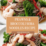 This flavorful Teriyaki Prawns & Broccoli Noodles recipe combines tender prawns, nutritious thin-stemmed broccoli, and soba noodles drenched in a homemade sweet and tangy teriyaki sauce. Ready in under 20 minutes, it’s a quick and delicious weeknight meal with a perfect balance of savory and zesty flavors, accented by a hint of red chilli for a gentle kick.
