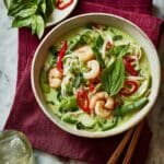 Keywords: Thai curry, noodle soup, green curry, prawn soup, Thai cuisine, quick dinner, coconut milk soup