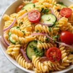 This Ultimate Hellmann’s Pasta Salad is a creamy and flavorful dish perfect for any occasion. Combining fresh vegetables, tender rotini pasta, and a tangy mayonnaise-based dressing, it’s both refreshing and satisfying.