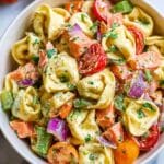 - Serve or chill: You can serve the salad immediately or cover and chill it in the refrigerator. If chilled, toss again before serving to redistribute the dressing and flavors. Enjoy your fresh tortellini salad!